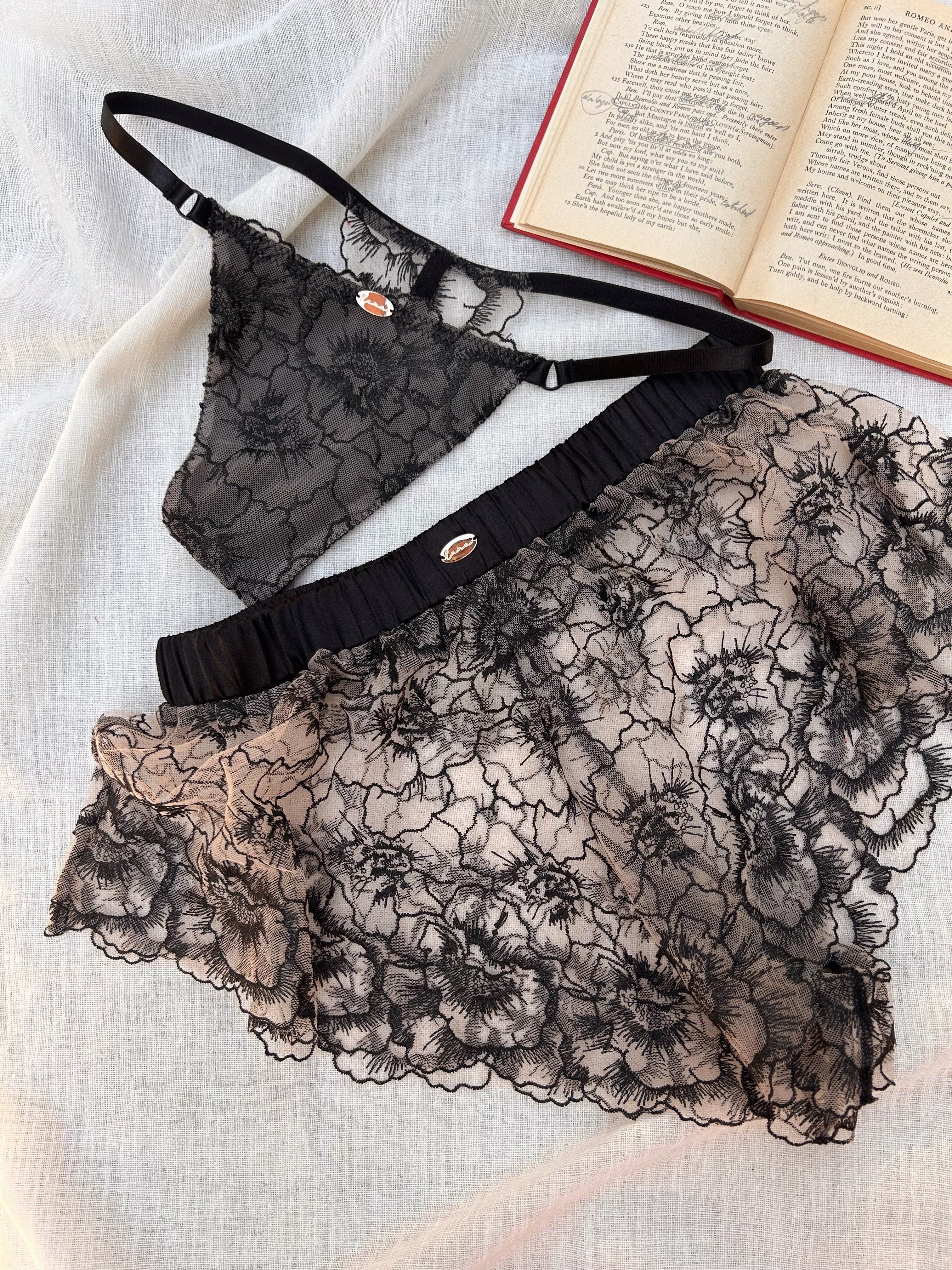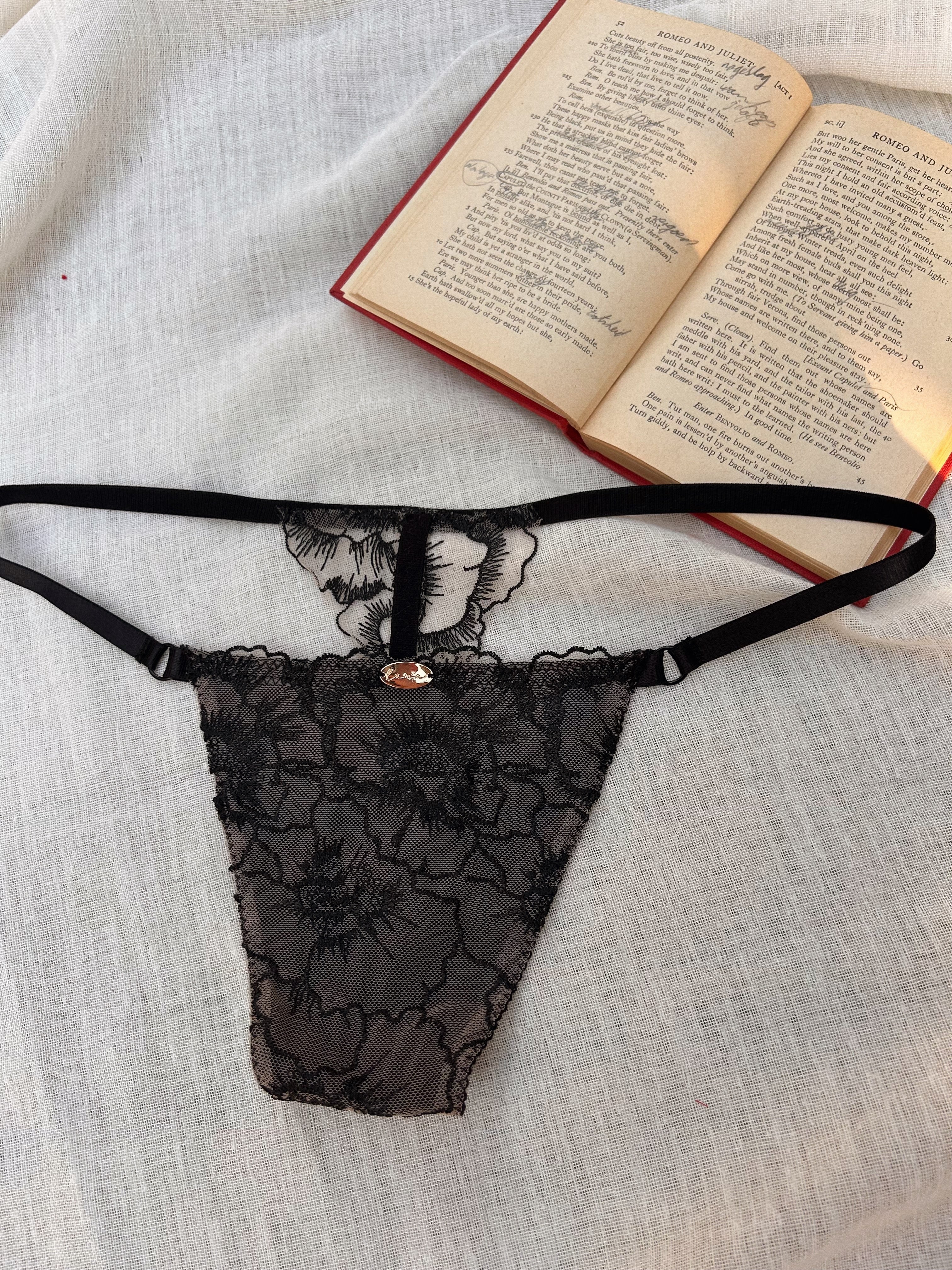 Handmade in limited quantities as part of Luna’s mini Valentine’s collection, the Noirelle Thong celebrates intimate detail, subtle sensuality, and the beauty of things made with care.