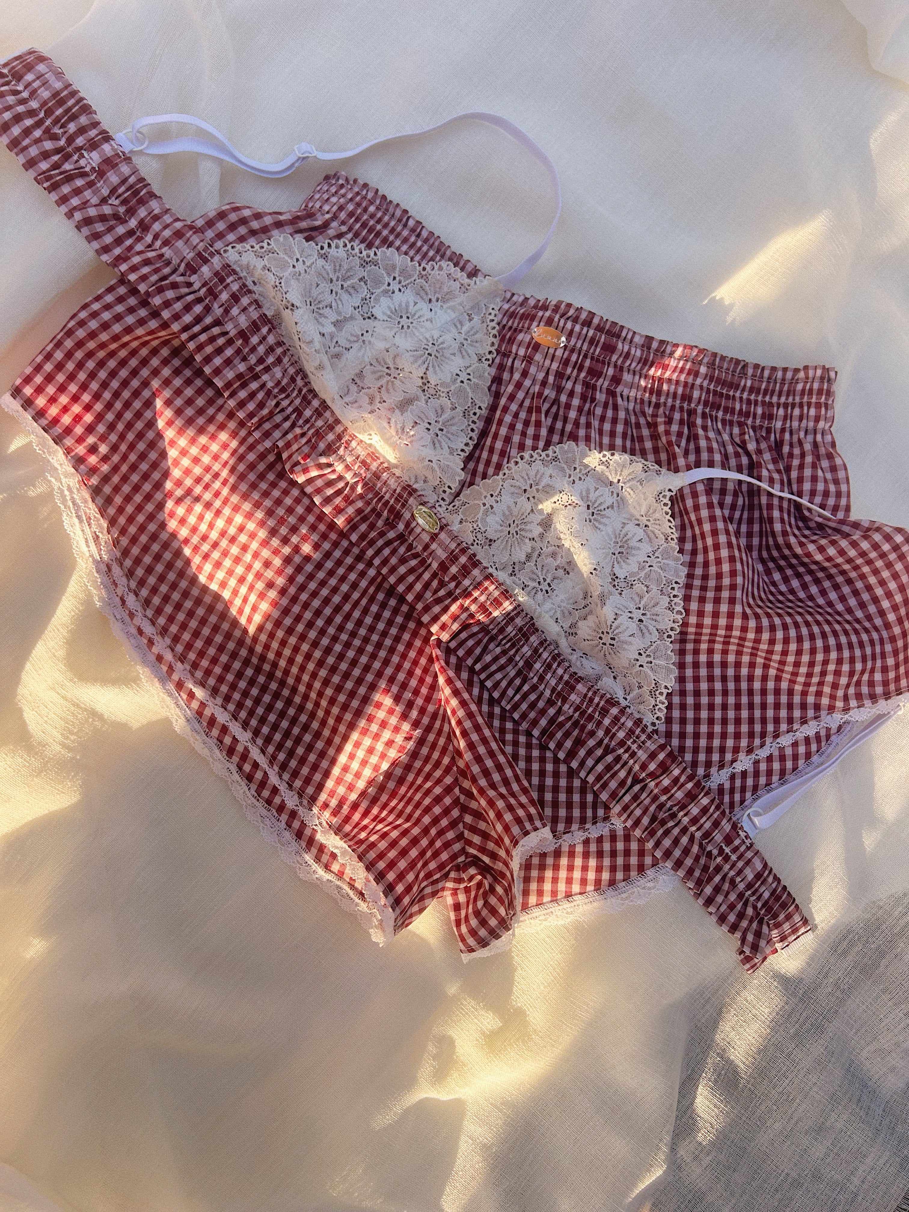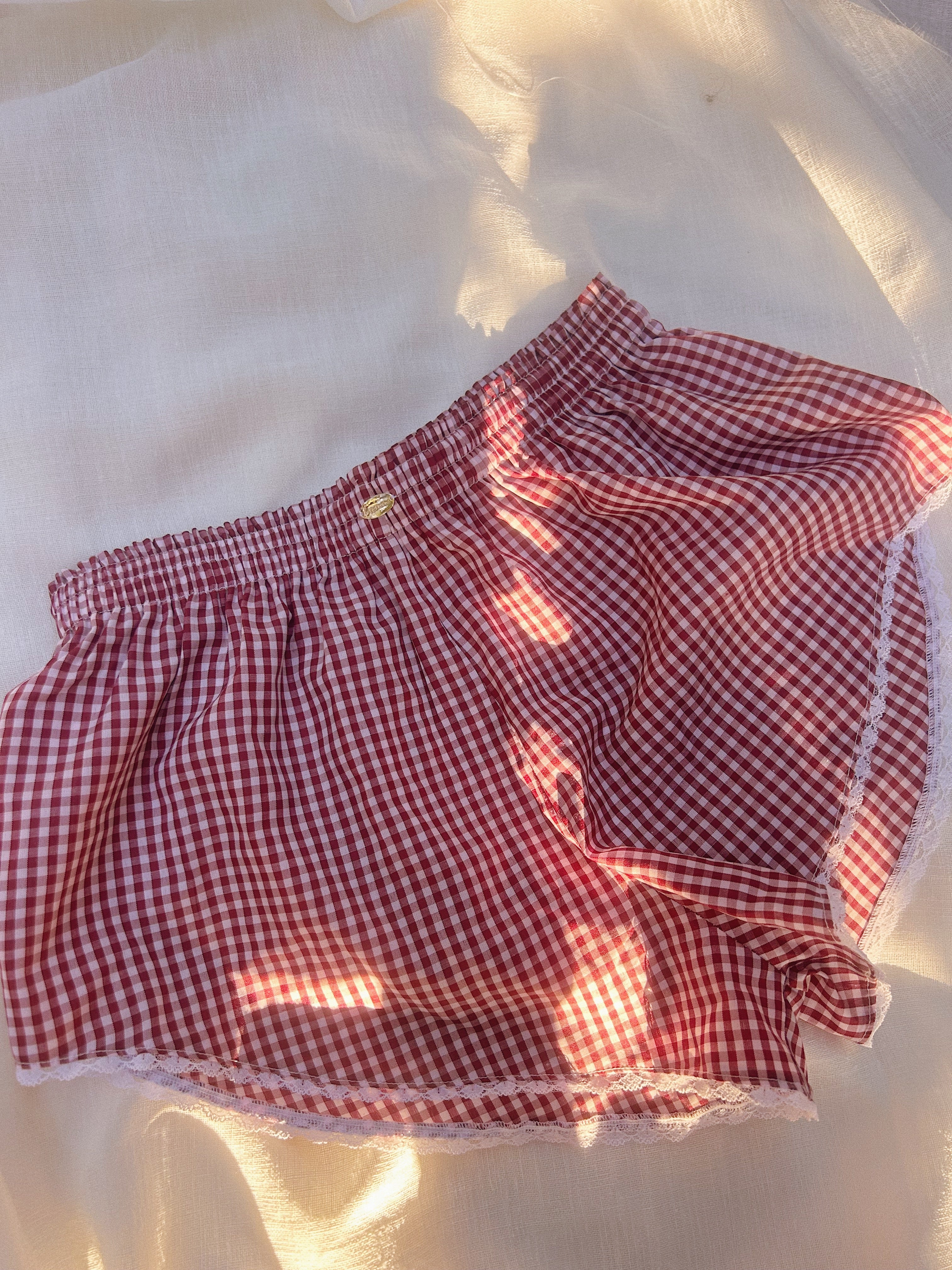 Soft, playful and quietly romantic, the Poppy Set captures the charm of slow summer mornings and sun-warmed linen sheets. Crafted from breezy polycotton in a cherry and blush gingham, this set feels light, airy and effortlessly comfortable against the skin.